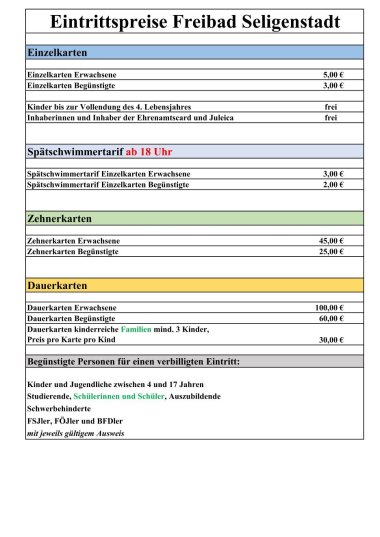 Freien Eintritt in das Seligenstädter Freibad haben Kinder unter 4 Jahren sowie Inhaberinnen und Inhaber der Ehrenamtscard und Juleica.