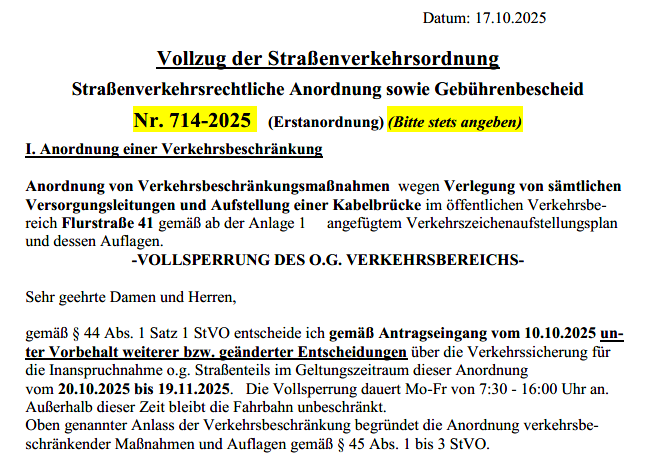 Verkehrsbeschränkung Flurstraße - Vollsperrung