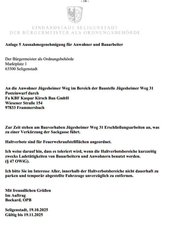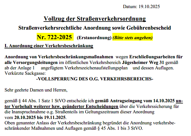 Verkehrsbeschränkung Jügesheimer Weg 31