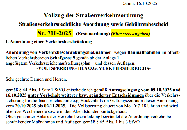 Verkehrsbeschränkung Schafgasse - Vollsperrung