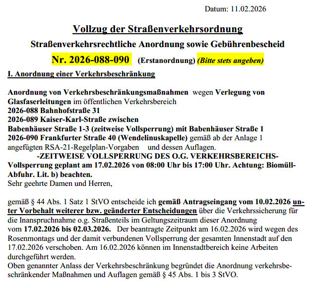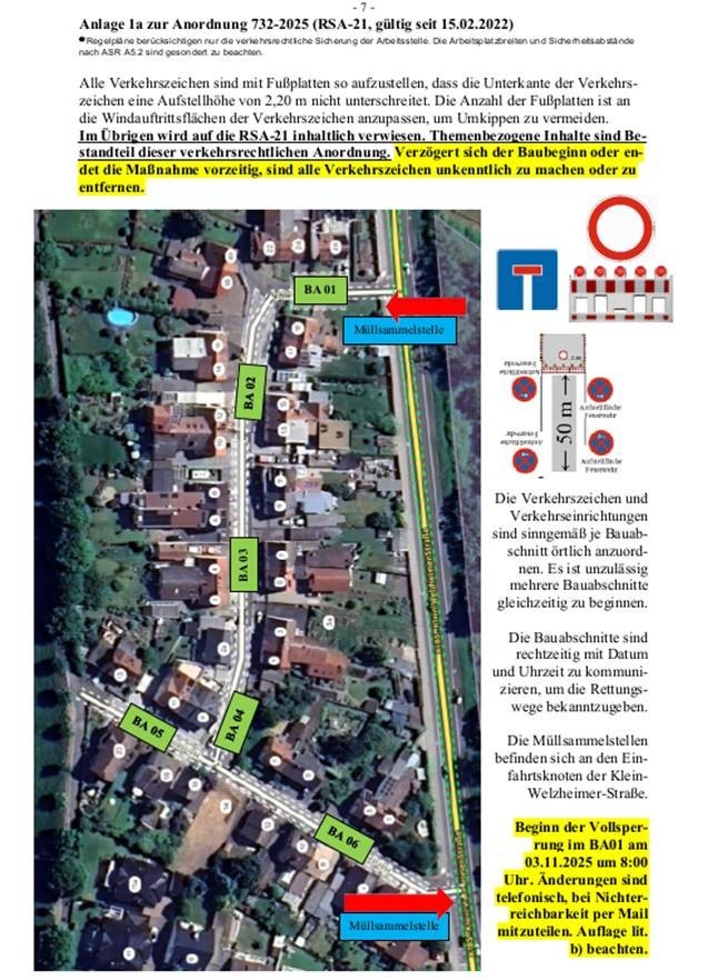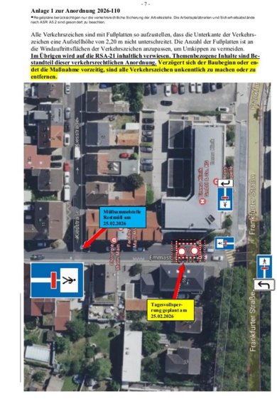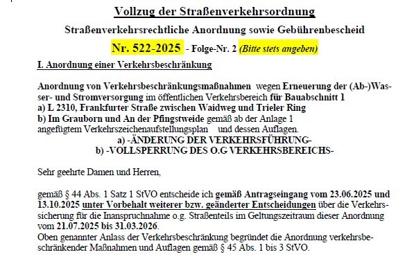 Verkehrsbeschränkung für Bauabschnitt 1a) L 2310, Frankfurter Straße zwischen Waidweg und Trieler Ring und Im Grauborn und An der Pfingstweide