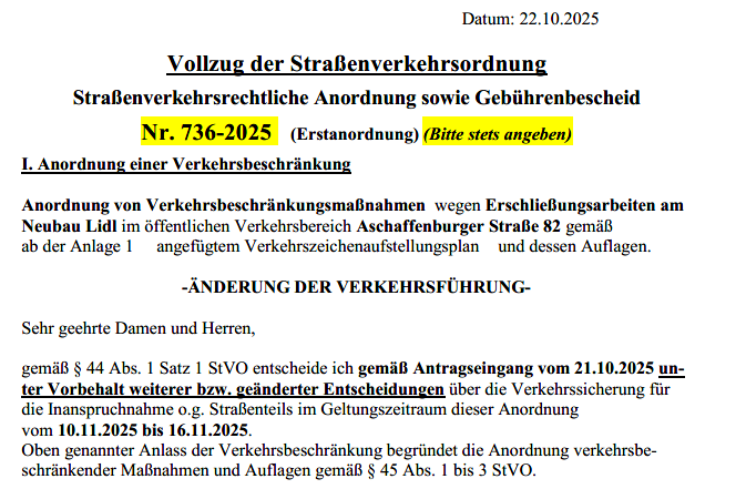 Verkehrsbeschränkung Aschaffenburger Straße 82