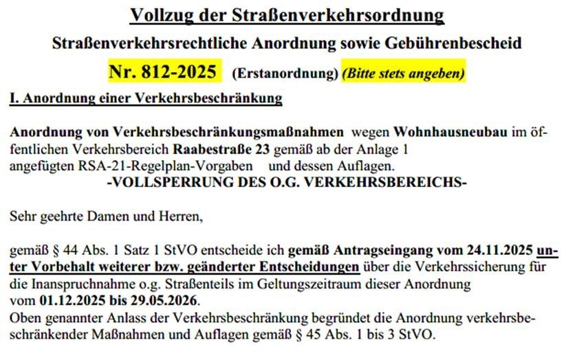 Verkehrsbeschränkung Raabestraße - Vollsperrung