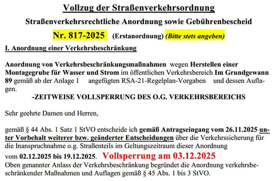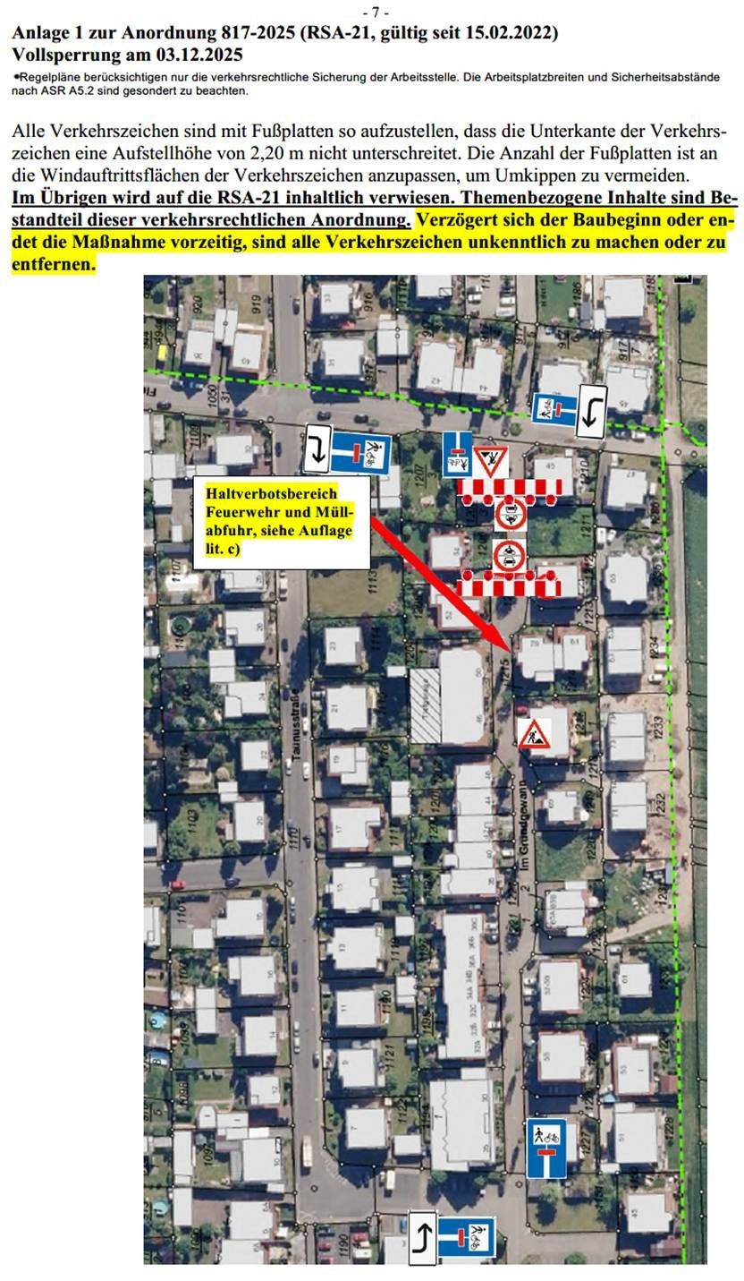 Verkehrsbeschränkung Im Grundgewann- Zeitweise Vollsperrung (am 3.12.2025)
