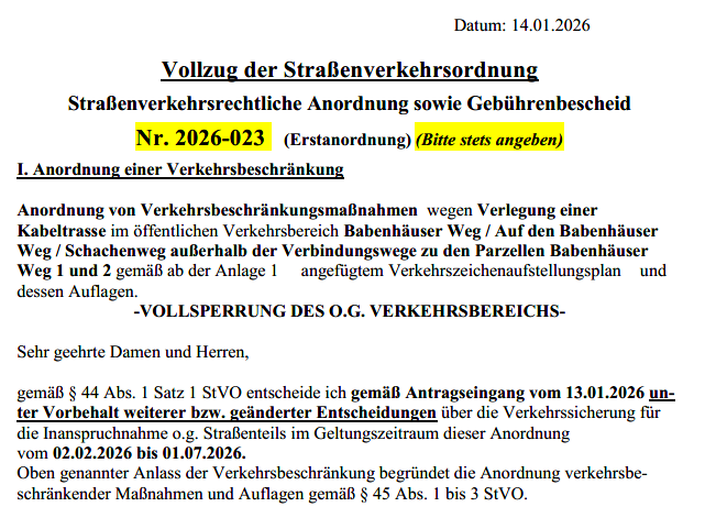 Verkehrsbeschränkung Babenhäuser Weg - Vollsperrung