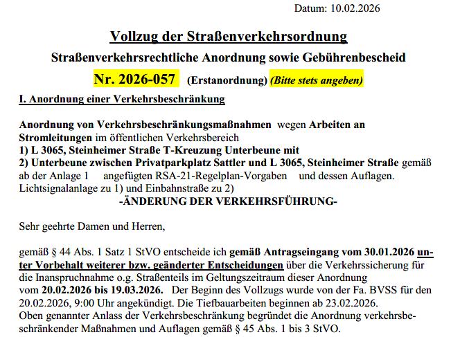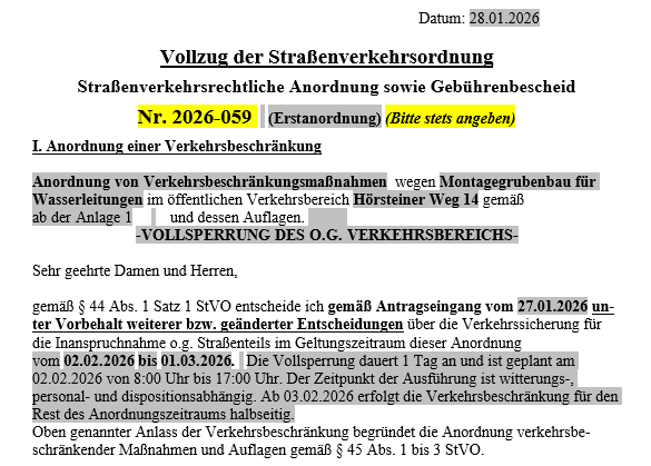 Verkehrsbeschränkung Hörsteiner Weg - Vollsperrung