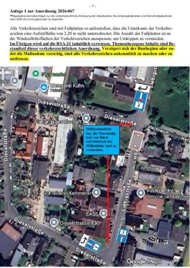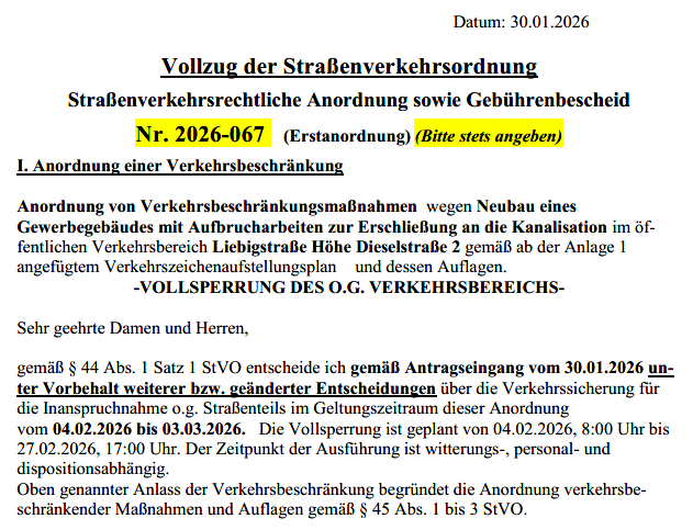 Verkehrsbeschränkung Liebigstraße Höhe Dieselstraße 2