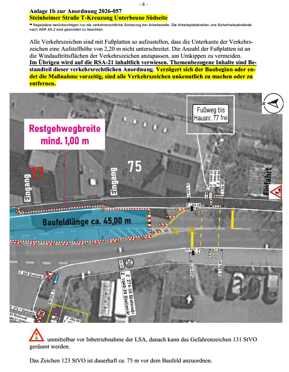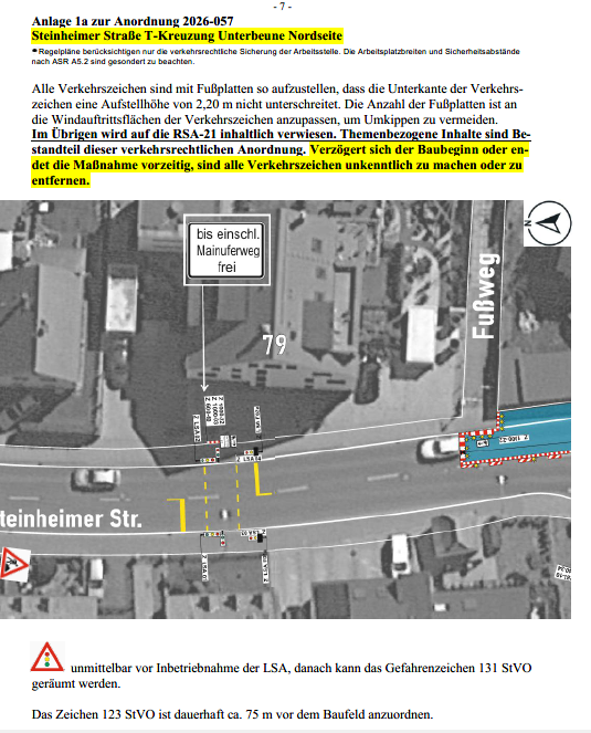 Verkehrsbeschränkung Steinheimer Straße - geänderte Verkehrsführung