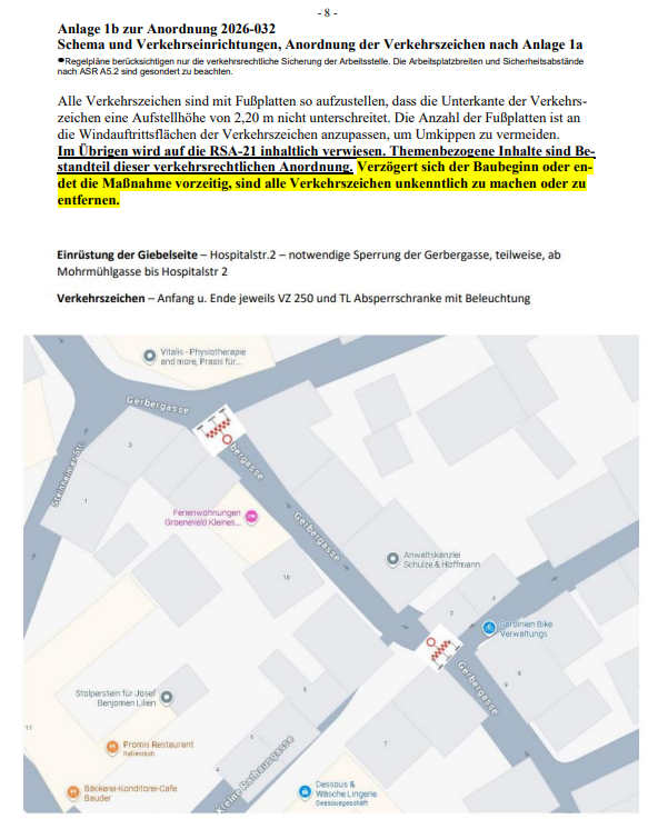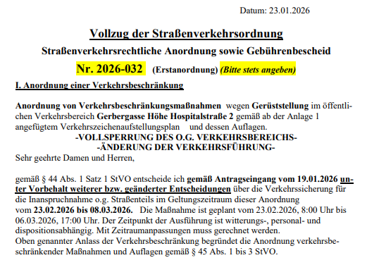 Verkehrsbeschränkung Gerbergasse - Vollsperrung