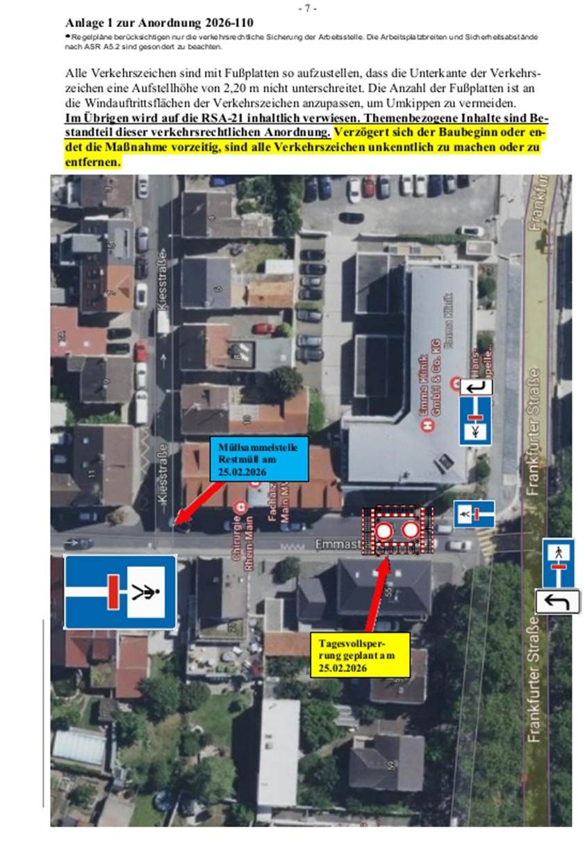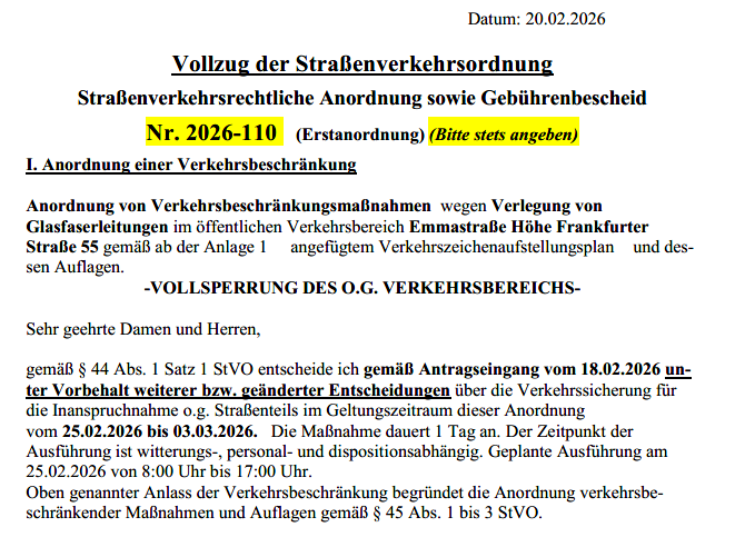 Verkehrsbeschränkung Emmastrasse Höhe Frankfurter Straße 55