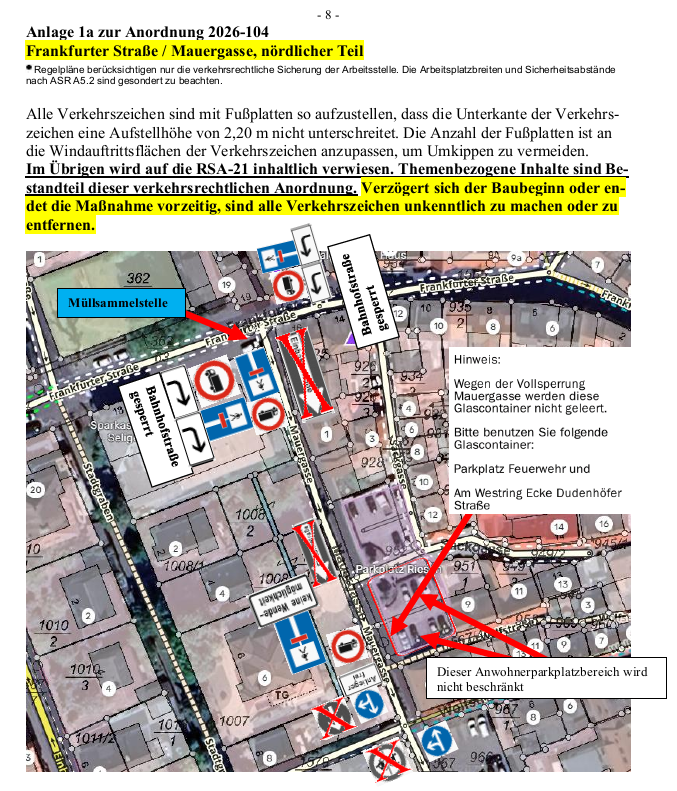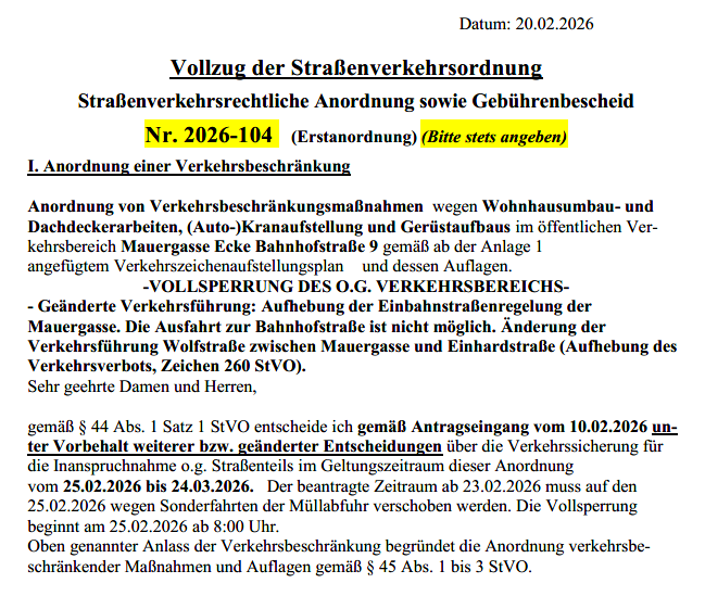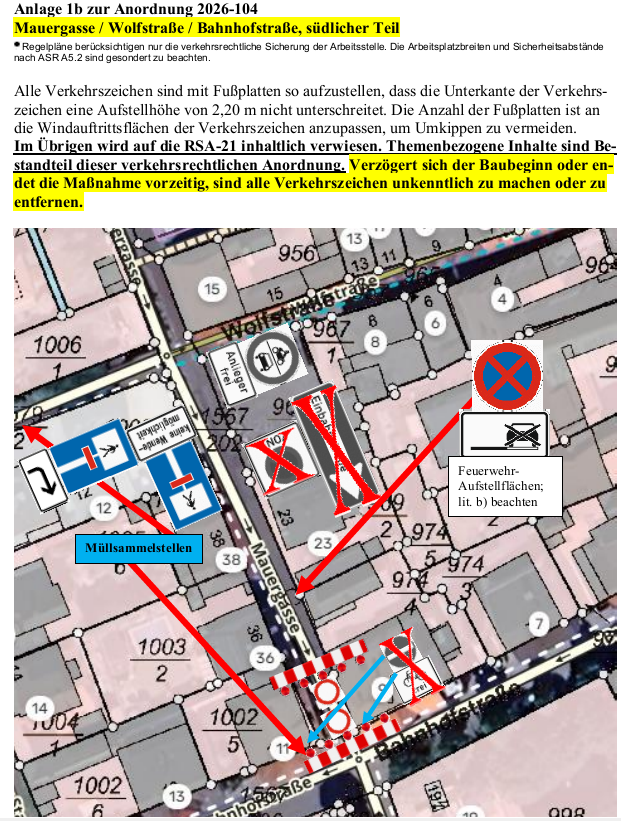 Verkehrsbeschränkung Mauergasse / Ecke Bahnhofstraße 9