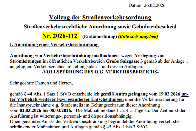 Verkehrsbeschränkung Große Salzgasse - Vollsperrung
