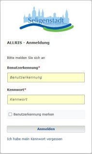 Das Ratsinformationssystem ist ein kennwortgeschütztes Informationsportal für die Mitglieder des Magistrats, Stadtverordnetenversammlung, der Beiräte und Kommisionen. Hier können sich die Mitglieder über die Gremien informieren, in denen Sie Mitglied sind (Einladungen, Sitzungsvorlagen, Beschlüsse, Niederschriften - auch nichtöffentliche Dokumente). Daher ist eine Zugangskennung erforderlich.