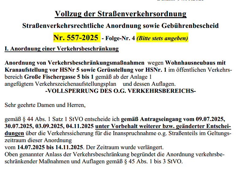 Verkehrsbeschränkung Große Fischergasse 5 - Vollsperrung