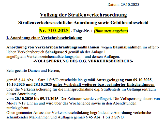 Verkehrsbeschränkung Schafgasse - Vollsperrung