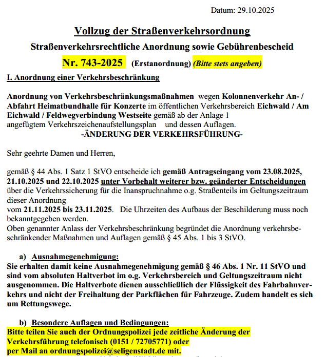 Verkehrsbeschränkung Am Eichwald / Heimatbundhalle - geänderte Verkehrsführung